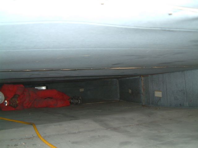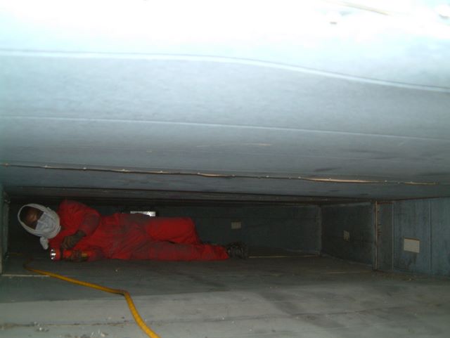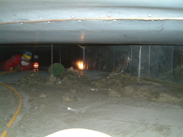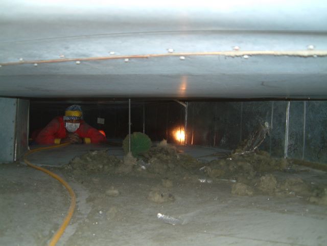 Big Red was appointed by a shopping center to remove broken insulation and clean up the duct after tenants were complaining finding yellow types of fibers/ particles all over the shop surfaces for nearly one week.