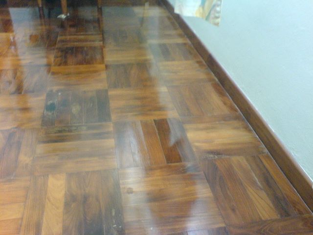 Big Red was called in due to water leaks which cause the parquet to moisture ingress. Big Red was able to restore the parquet to its pre-loss condition by identifying the leak and repairing it, dehumidifying the parquet to remove the excess moisture, re-sanding/grinding and varnishing it.