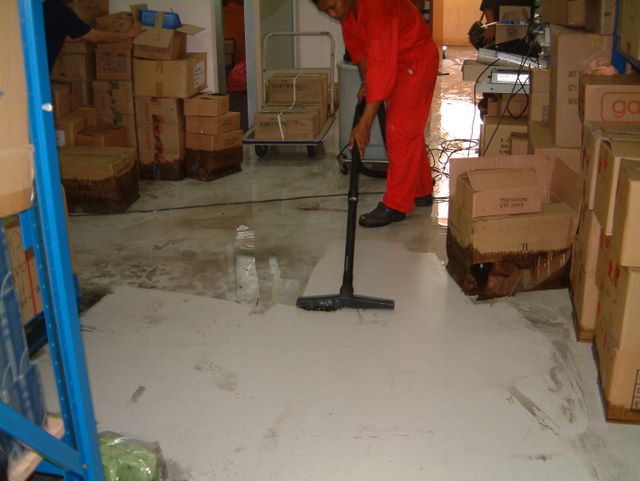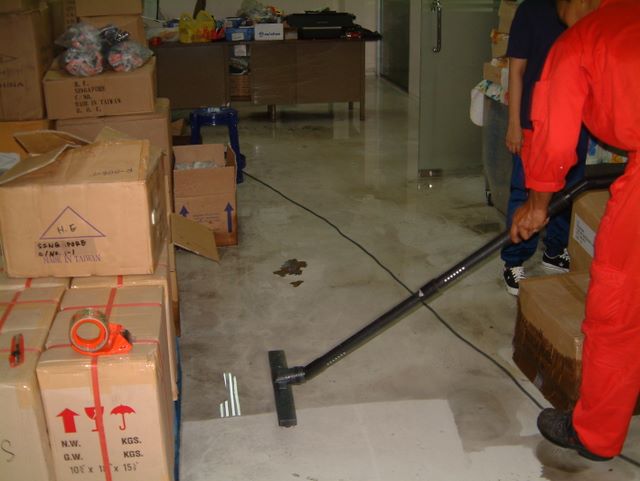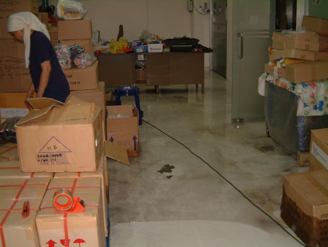 An air con fan coil electrical caught fire in a storage area in Singapore and contaminated the entire premises with soot. The sprinkler system was activated to dose the fire. Big Red was deployed to decontaminated and bring back the premises to pre loss in no time. Fire Restoration is not a simple clean up. If done incorrectly, many items will not be able to be restored to pre loss condition. Click for larger view: