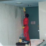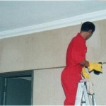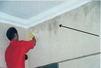 Condensation and moisture ingress can cause micro organisms growth on wall paper. The picture show that the wallpaper surface contaminated with micro organisms growth and it is decontaminated using Ox Bio disinfectant and coated with Ox Bio Germ Shield to prevent future microbial growth on the treated surface. The 4th picture demonstrates treated and non treated coated surface. The coated surface using Ox Bio Germ Shield inhibit the growth of micro organisms for a long time. Click for larger view: