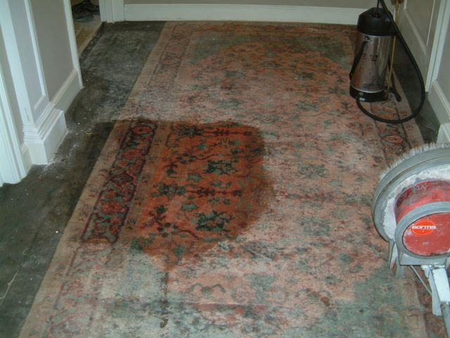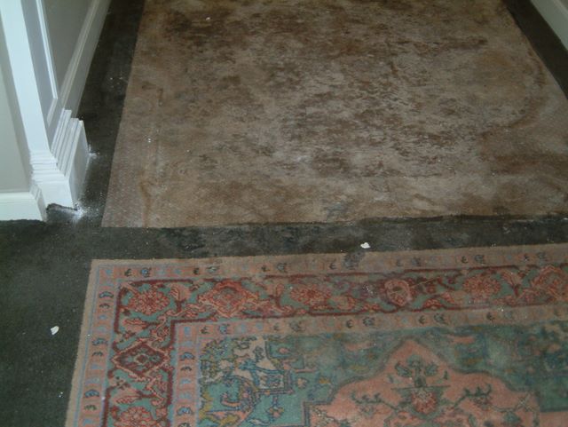 Big Red was called in to restore rug affected by construction. The picture shows the level of construction dust and its condition. Big Red was able to remove all the dry particulates and revive /bring back the color of the rug to its original state.