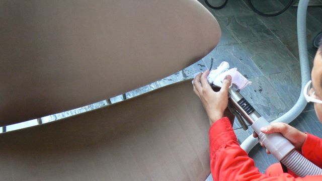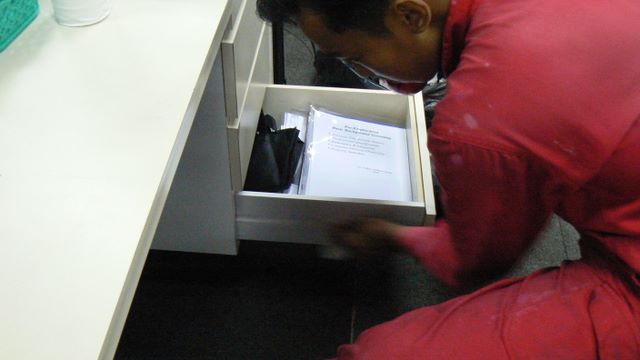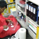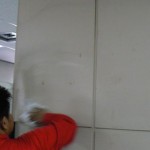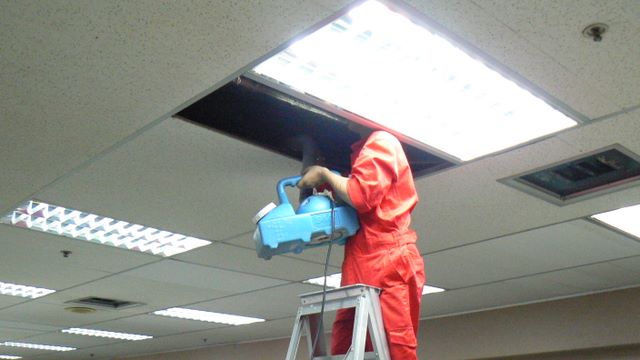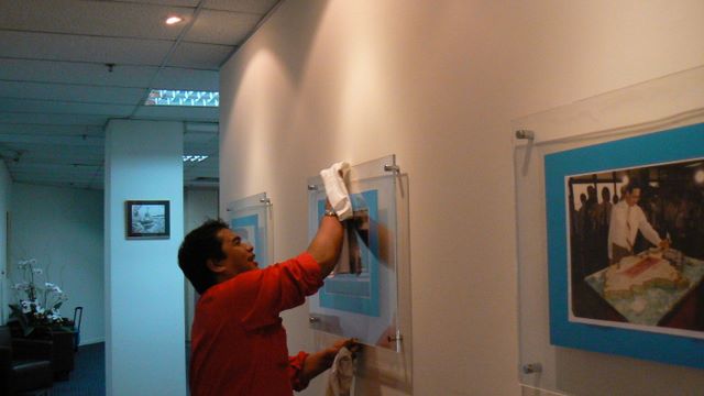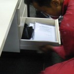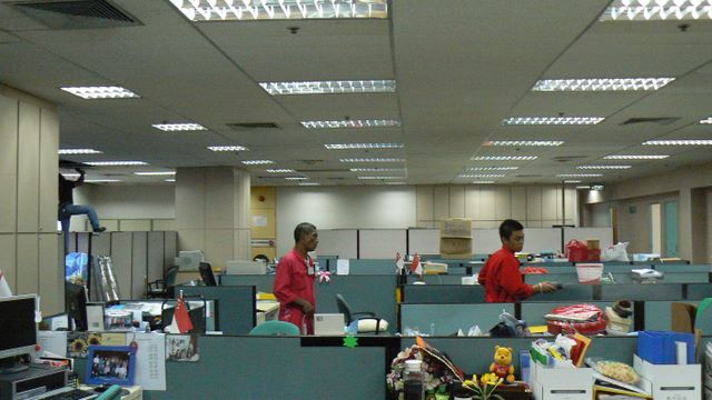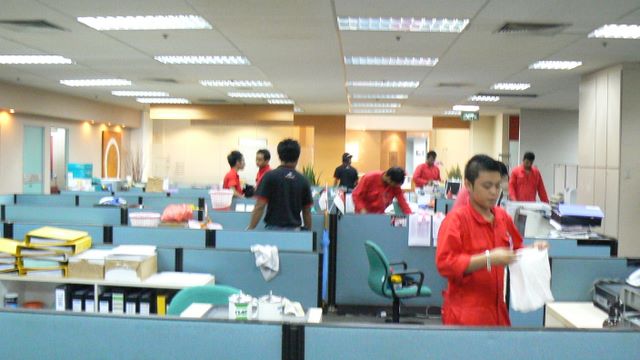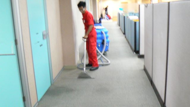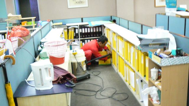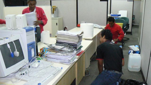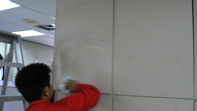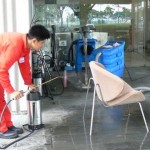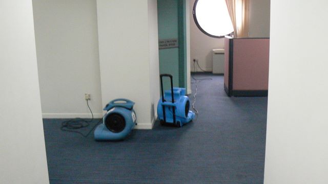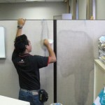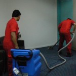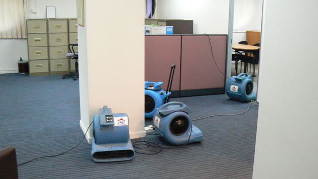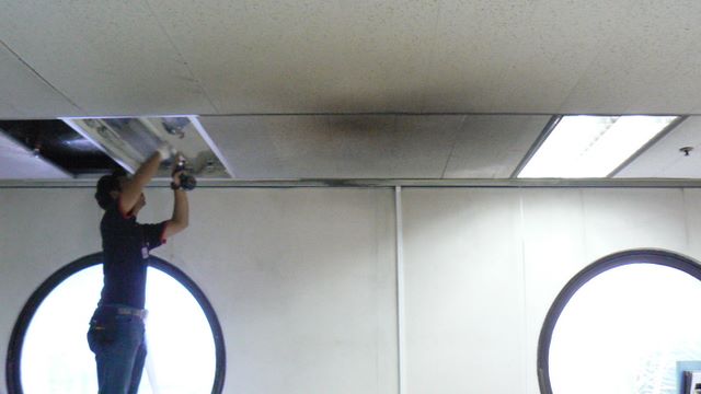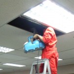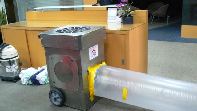 A fire broke out and contaminated the entire office premises. All the fixture and furniture, ducts, fabric wallpaper, upholstery were contaminated with soot and soot smell. We were called in to discontented the premises. Click for larger view:
