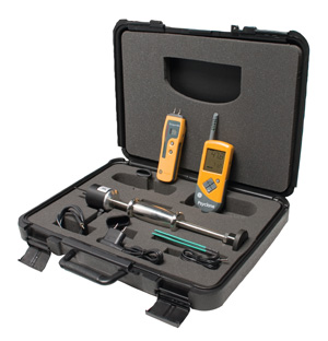 Get the Psyclone, Surveymaster, and Hammer Probe together in a durable ABS case. This compact and user-friendly kit equips the technician with everything needed to read ambient conditions and measure moisture content of materials. Precut foam inserts protect and organize tools for ready access.